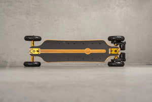 Every Fusion rolls out with a premium setup straight from the box. You get Evolve’s signature Gold SuperCarve 2.0 trucks, designed for ultimate stability and control at speed. Paired with tanwall all-terrain tyres and gold precision bearings, this board doesn’t just ride smooth, it looks the part too. It’s our cleanest factory build yet, with style and substance in every detail.
