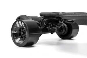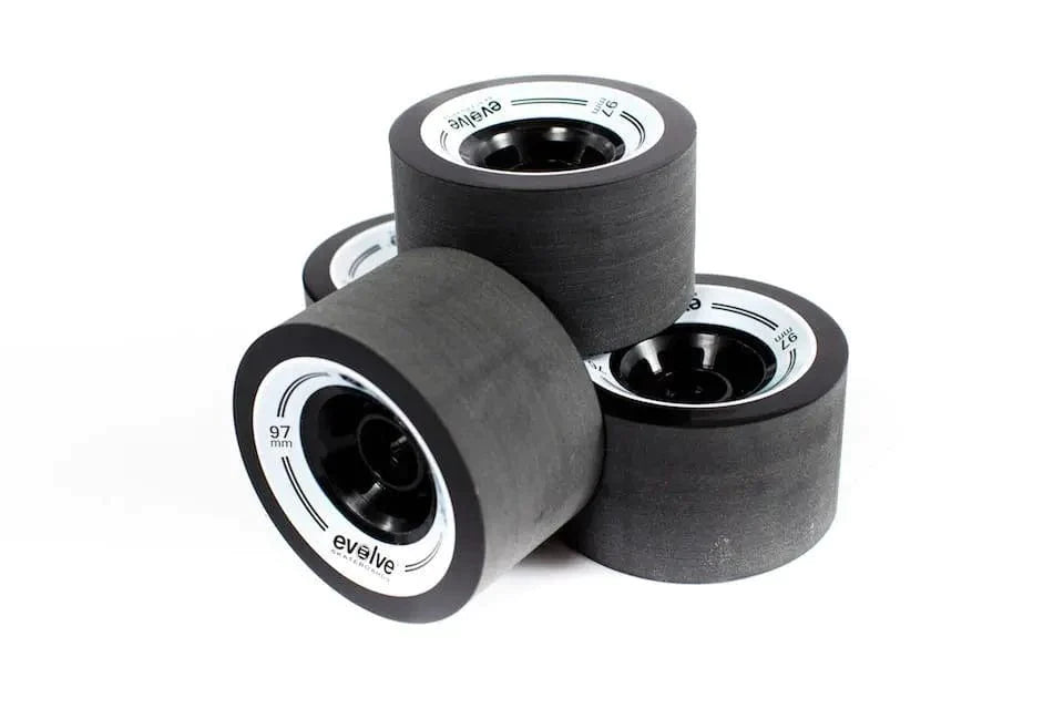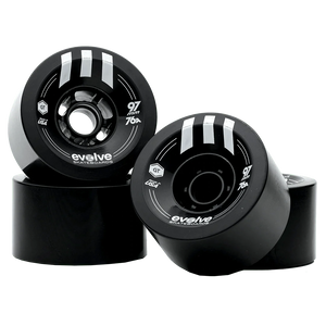 WHEELS: Evolve 7" pneumatic all terrain wheels. Also compatible with our street kit which fits the Evolve GT wheel range, 85mm Orangatang Caguamas and the 107mm Evolve/Abec 11 F1 wheels.