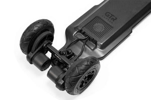 Handmade from 100% Carbon fibre, the GTR deck beautifully conceals the most intelligent electric system Evolve has ever produced. The Series 2 introduces Bluetooth FOC control to the GTR, providing a new level of instant power and ultra-smooth acceleration and braking performance, placing the ultimate in intuitive riding control in your hands. Our lithium-ion Power Flex battery technology will provide you with a real-world range of up to 50km per charge with street wheels, turning any road or path into the endless wave of your dreams. Now with powerful dual 6000W rated 6368 motors driving your choice of our made-in-USA Evolve 97mm inline race formula wheels OR 7 inch all terrain pneumatic tyres, smooth yet responsive performance is at the heart of this machine.